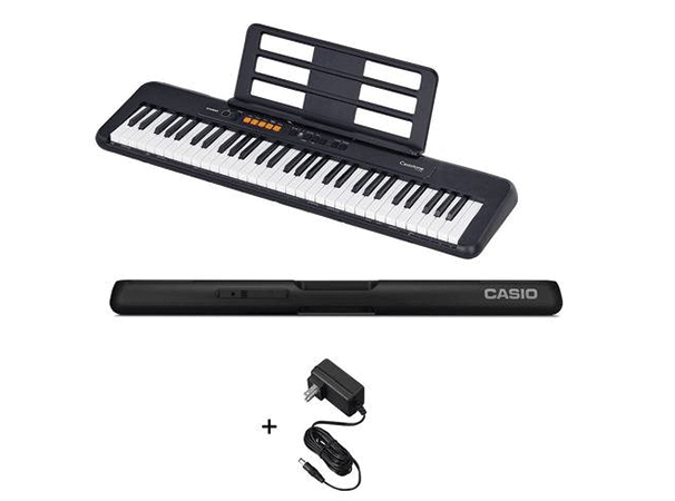 – Teclado de cinco octavas ideal para principiantes de todas las edades. Tiene 61 teclas, 122 tonos, 61 ritmos, 60 melodías, USB a host, salida de amplificador.